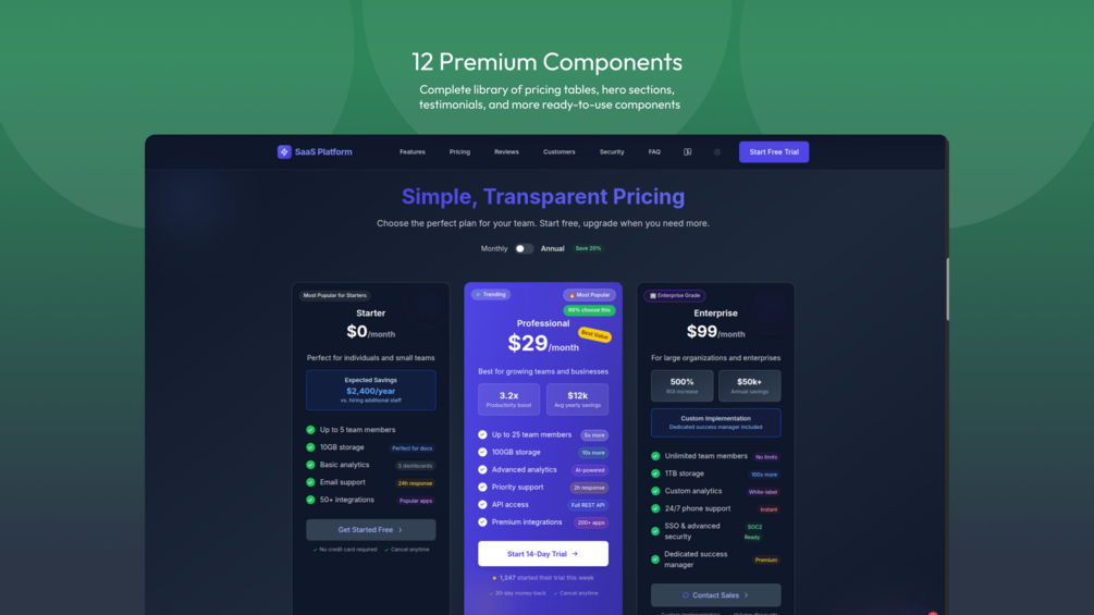 - Conversion Optimized - Based on analysis of successful SaaS pages